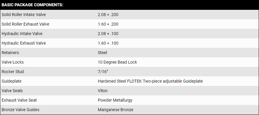 PAC, MANLEY, COMP CAM SPRINGS & CUSTOM BUILDS ARE AVAILABLE UPON REQUEST.